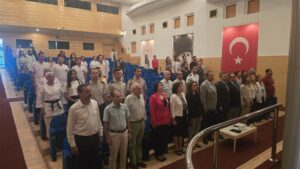 5 Eylül Dünya Omurilik Yaralanması Günü münasebetiyle omurilik yaralanmalarının farkındalığını artırmak amacıyla Gaziler Fizik Tedavi ve Rehabilitasyon Eğitim ve Araştırma Hastanesinde etkinlik düzenlendi. Etkinliğimiz, Saygı Duruşu ve İstiklal Marşımızın okunmasının ardından, Omurilik Hastalıkları Derneği Başkanımız Prof. Dr. Sn. Müfit AKYÜZ ve Prof. Dr. Sn. Engin KOYUNCU’nun açılış konuşmaları ile başladı. Toplantı, Doç. Dr. Sn. Fatma ÖZCAN’ın “Omurilik Yaralanmasının Nedeni Olarak Düşme” konulu sunumunun ardından, Doç. Dr. Sn. Merve Örücü ATAR’ın “Omurilik Yaralanmalı Bireylerde Osteoporoz” konulu sunumu ile devam etti. Tartışma bölümünü yöneten Gaziler Fizik Tedavi ve Rehabilitasyon Eğitim ve Araştırma Hastanesi Omurilik Hasarı Bölümü Sorumlusu Prof. Dr. Sn. Bilge YILMAZ katılımcılara söz verdi. Konuşmaları ve gösterileriyle etkinliğimize renk ve anlam katan Türkiye Karate Federasyonu Para Karate Milli Sporcuları Sn. Nesrin CAVADZADE ve Sn. Oya EKİCİ ile antrenörleri Sn. Yasin ÇETİNTAŞ’a günün anısına ebru çalışması takdim edildi.